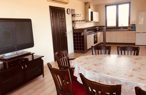 Разполага с тераса с голяма маса люулка просторен хол и напълно обуридвана кухня.