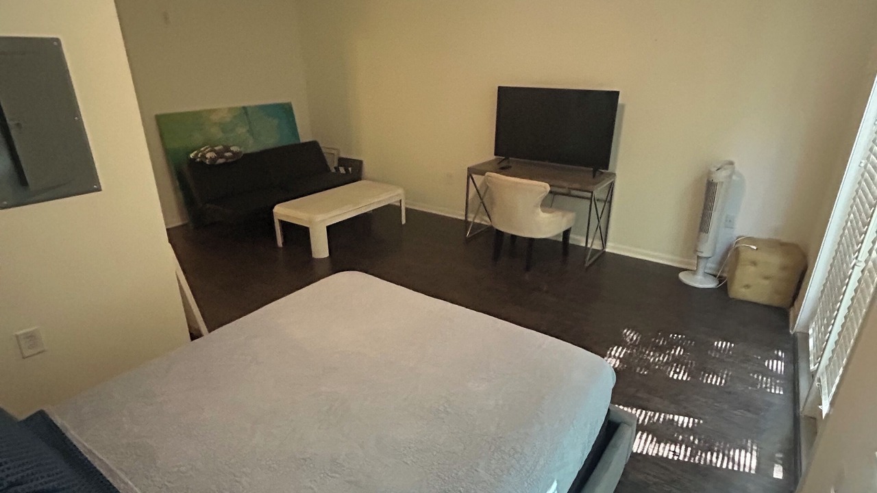 Come stay in the middle of the Legacy West Strip and this cozy and comfortable non-shared unit. Lots of shops and restaurants to walk to. Zero party tolerance. Come stay on the Rodeo Drive of Texas. Studio (queen).