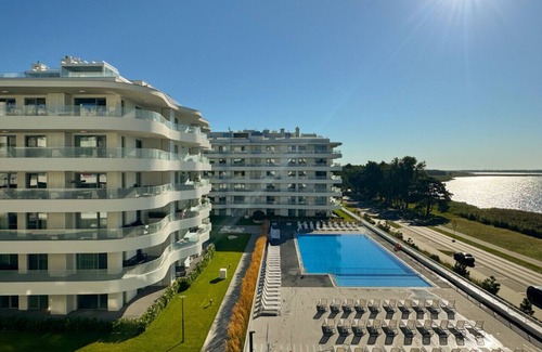Rogowo luxury apartments in a private resort by the sea, with a view of the pool and lake and private entrance to the beach.