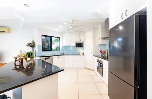 Situated next to Darwin’s CBD, you’ll discover a luxurious five-bedroom oasis surrounded by nature. With capacity for up to ten guests, enjoy the luxury of a multi-level group getaway decorated in contemporary furnishings and featuring three bathrooms, multiple indoor and outdoor entertaining areas and a spectacular waterfront pool.