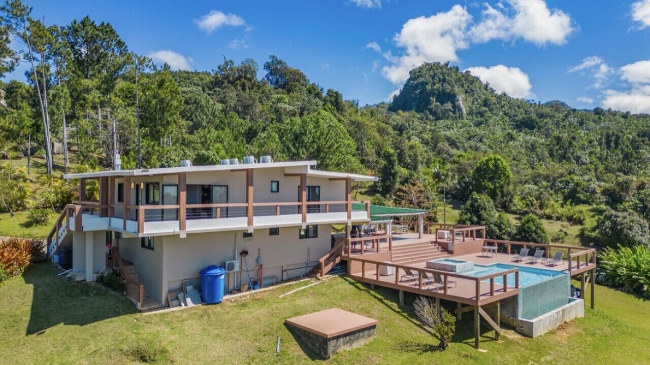 5 acres bordering the El Yunque National Rainforest. Private house with 4 bedrooms, wrap around balcony, 360 degree views and a private saltwater HEATED* pool. Huge deck and BBQ* area.
