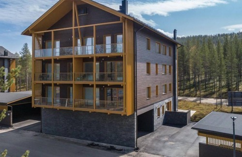 Tunturinlaita C3 is an elegant alpine style apartment in the center of Levi and in the middle of nature. The apartment on the second floor is a great choice for both couples and families. From the balcony of the apartment you can admire the beautiful nature of Lapland, skiers passing by or skiers cooling off on the front slope.